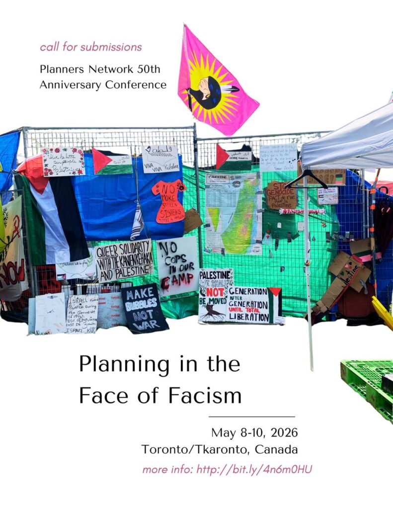 Planners Network, a network of progressive planners, academics, students and activists based in North America, also known as Turtle Island, and beyond, is seeking proposals for the conference celebrating its 50th anniversary: Planning in the Face of Fascism. The theme of this conference engages the pressing political challenge confronting progressive people around the world, namely, the global resurgence of the phenomenon popularly known as fascism. While there are of course still academic debates on the proper name to grasp the nature of the current conjuncture, it is clear that the various situations in which planners work—in relation to forces of state, economy and people—are being decisively shaped by comparatively varied combinations of authoritarianism and the far right. These contexts are now thoroughly permeated by strands of fascist politics and ideology, notwithstanding the obvious differences between the present state of the world and the conditions that led to classical European fascisms. Under the present circumstances, the progressive principles affirmed by Planners Network have come under unprecedented threats and they are in urgent need of not only vigorous defence but also organized radicalization.